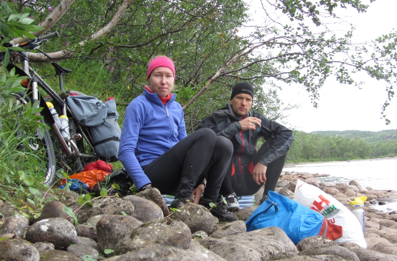 10 августа. Обед у речки рядом с трассой.