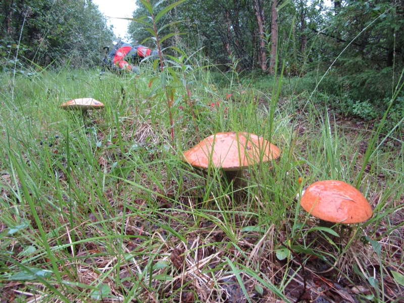 Грибы растут прямо на дороге.