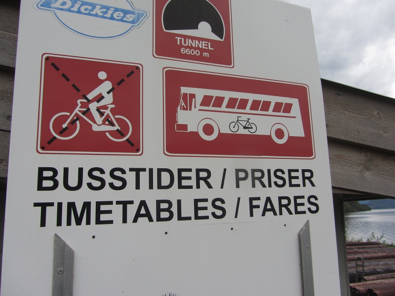 Запрещающая табличка перед въездом в тоннель на Е136. На велике нельзя.