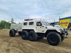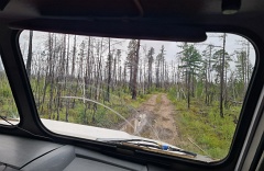От Якутска до турбазы "Уораннах" на реке Синей - 190 км по асфальту на микроавтобусе и 75 км по таежной дороге на снегоболотоходе