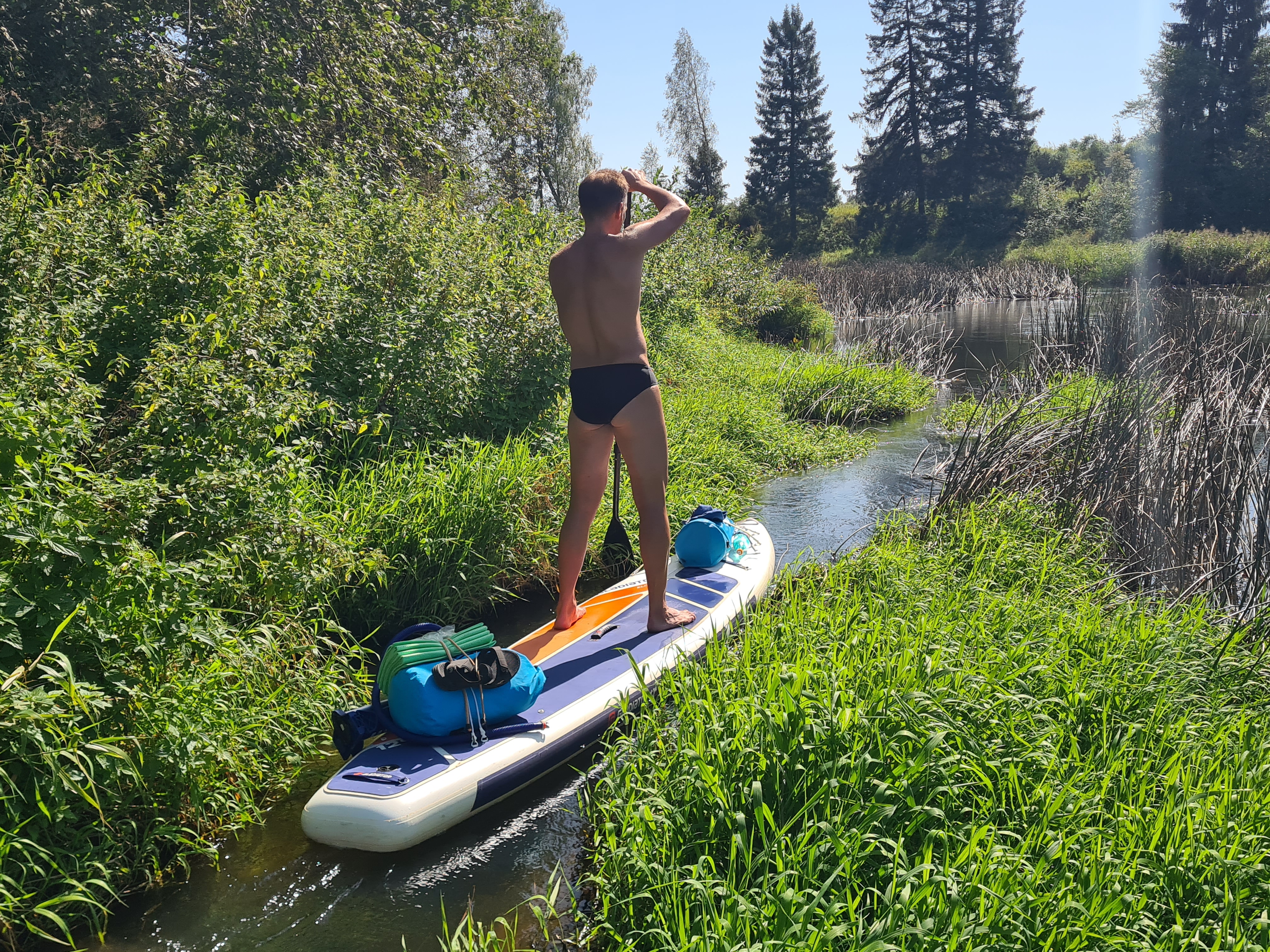 Везде есть проходы, вылезать в воду и проталкивать сапы не пришлось.